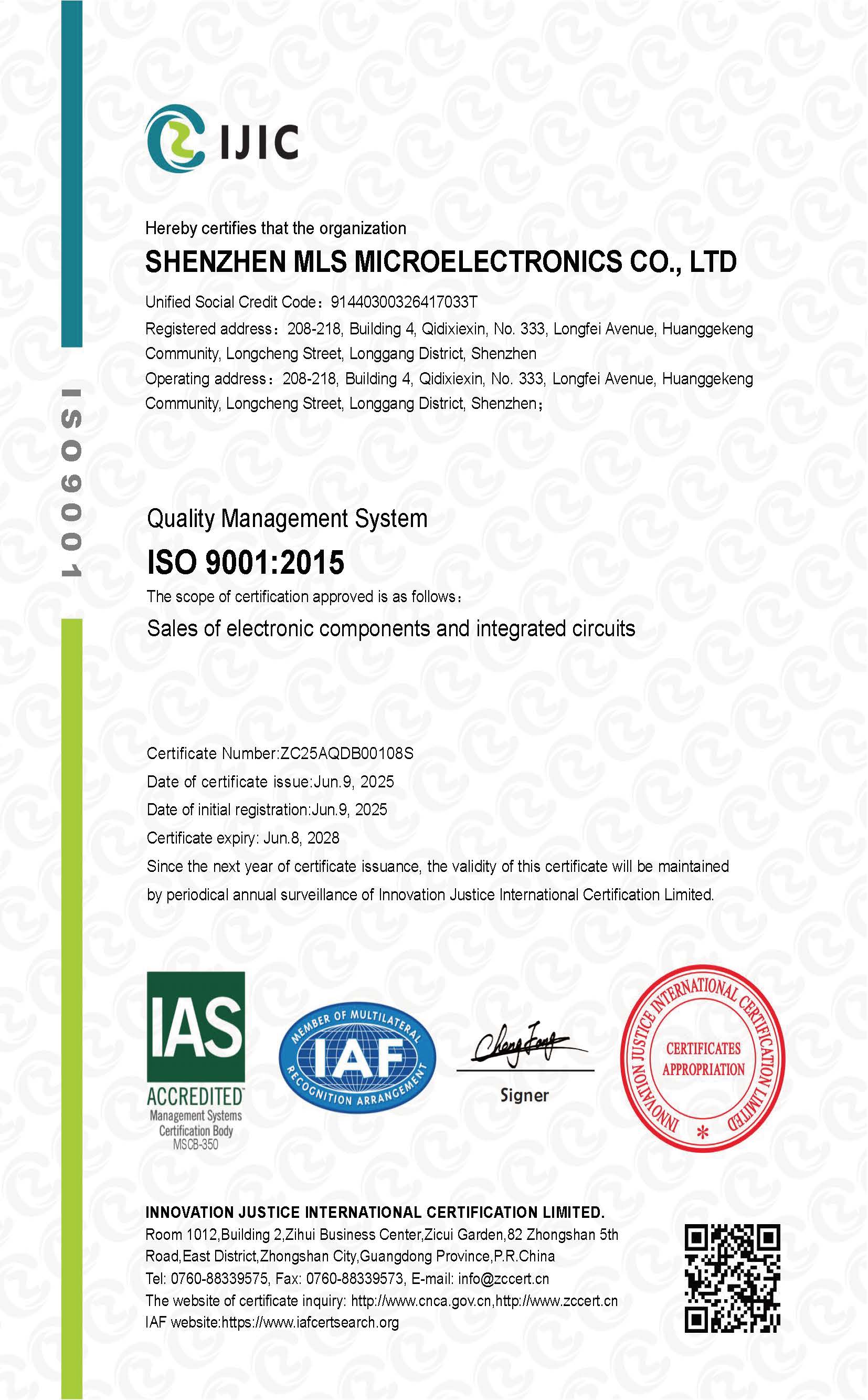 质量管理体系认证证书